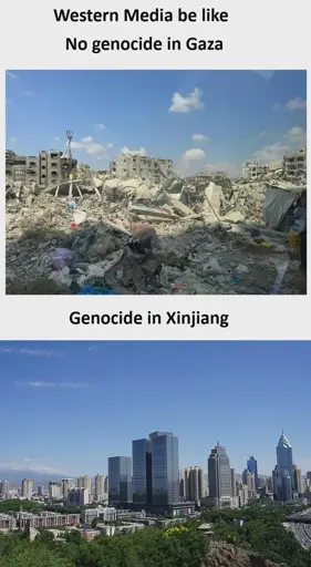 After a decade of accusations, the West still hasn’t been able to find even a single instance of a Uyghur being killed. Meanwhile we’re getting daily footage of massacres in Gaza.