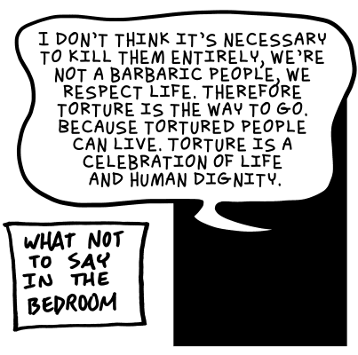 So I tend not to post weekend ones but saturday she does this simple filler thing where its a setup of what not to say in the bedroom and then something someone said somewhere. It better days it was mostly from films and movies but lately its been from political figures and lately for me its been like. WTF! I like to think I keep realtively abreast of things but its like who the eff said this!
