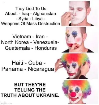 So when the OP says “Theyre lying about Ukraine” its to point out how the US acts as if they had no hand in this situation. As if they werent supporting the Azov Battalion as it attempted ethnic cleansing. And how they act as if Ukraine is a monolithic entity. As if all Ukrainians were unhappy about Russias invasion. Which is very much not the case.
