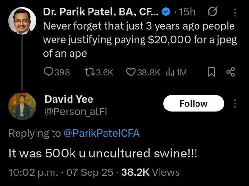 Yeah, and I laughed at their stupidity the whole time. There was only ever one potential use case for NFTs (paying the artist) and it was immediately trampled by herds of gullible morons trying to make a quick buck.