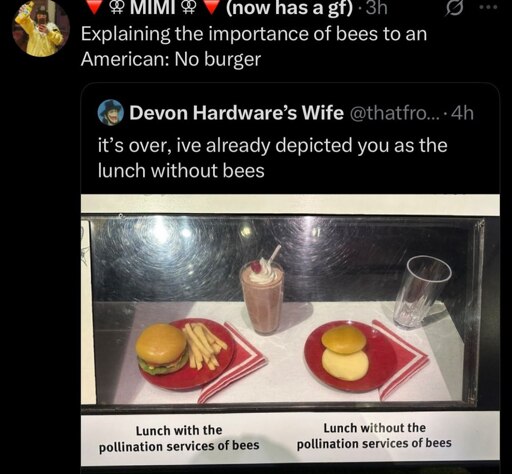 cm0002@lemdro.id to Funny@sh.itjust.worksEnglish · 4 days agoExplaining the importance of bees to an Americanlemmy.mlimagemessage-square57linkfedilinkarrow-up1476arrow-down118