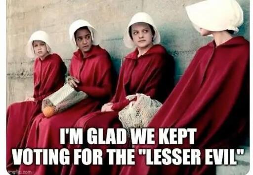 …yes voting for the lesser evil is not the best option it’s still better than just letting the evil evil win.