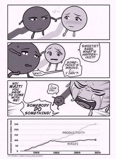 Another thing these graphs usually don’t include is neither the value in stocks nor the wages of the highest earners (typically when they show “wages” they exclude the top 20%), nor the bonuses and benefits they might receive (both for top earners and for workers)… so we don’t see exactly where the profits are going, how much it actually affects the inequality (and btw, they should show the profits as well… which imho is more directly relevant than the GDP)… the graph is a simplification that makes it very hard to see what’s happening and what needs fixing.
