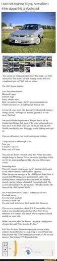 Stamets@lemmy.dbzer0.com to Funny@sh.itjust.works · 2 months agoCraigslist at its bestlemmy.dbzer0.comimagemessage-square34linkfedilinkarrow-up1683arrow-down113