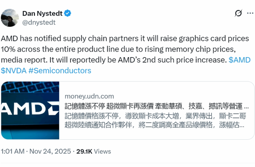 The article is simply AMD pricing the bubble uncertainty into their product. We’ll likely see the Steam Machine have a similarly inflated price (and also due to tariff uncertainty)
