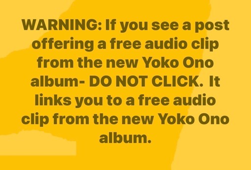 I’m an artist. Been one for forty years, both studio/session and stage- And Yoko is a hot mess. It’s not art just because it’s a performance. And it’s not good just because you hang a “misunderstood” sign on it.
