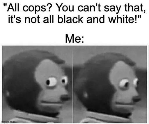 I’m on the “it’s all until it’s regular practice for cops to arrest their peers and leaders for breaking laws” side. Like, yeah, there are probably some who want to “change the system” or are “just keeping their head down and providing for their community” which are both noble aspirations… but they need full scale follow through or it’s just copwashing.