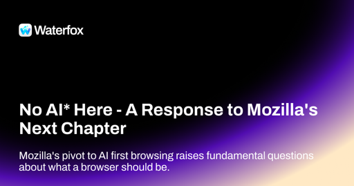 arrow-up1237arrow-down1external-linkNo AI* Here - A Response to Mozilla's Next Chapter - Waterfox Blogwww.waterfox.comNutomic@lemmy.ml to Privacy@lemmy.mlEnglish · 14 days agomessage-square54linkfedilink